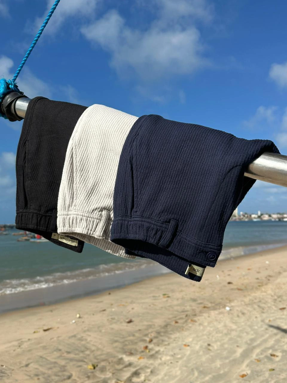 Disponível em uma paleta versátil e sofisticada — off-white, azul marinho, areia, gelo e preto — o short é perfeito para quem busca estilo sem abrir mão da leveza.
